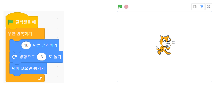 스크래치는 언제나 깃발을 클릭했을 때부터 시작합니다.