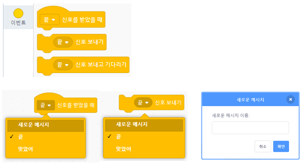 학교에서 선생님이 일어서라고 말을 합니다. 소리를 듣고 일어서는 친구도 있고, 딴청 부리는 친구도 있고, 자는 척 하는 친구도 있습니다. 선생님과 친구들은 모두 스프라이트입니다. 스프라이트는 신호보내기를 할 수 있고, 신호를 받았을 때 하고 싶은 일을 할 수 있습니다.