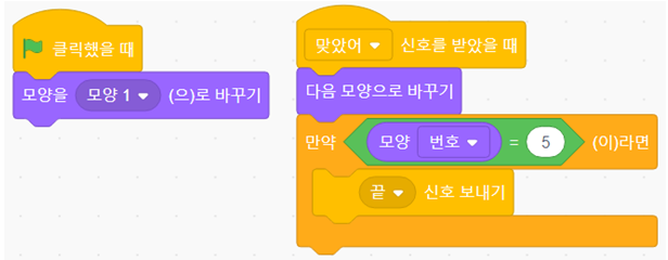 ‘맞았어’ 신호를 받으면 생명바가 하나씩 줄어 듭니다.