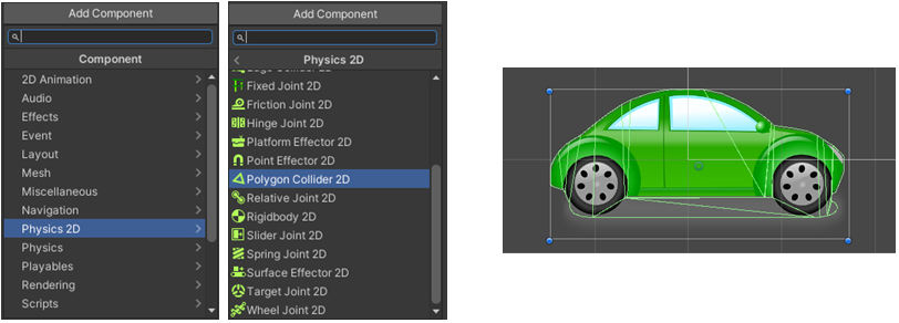 Polygon Collider 2D 컴포넌트에는 is Trigger 항목이 있습니다. Collider의 is Tirgger를 체크합니다.