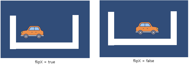 화살표키(위,아래,오른쪽,왼쪽 키)를 누르면 Car 게임오브젝트가 움직입니다. 그런데 오른쪽 왼쪽키를 눌렀을 때 바라보는 방향이 바뀌도록 하려고 SpriteRenderer 컴포넌트에 있는 flipX를 이용합니다.