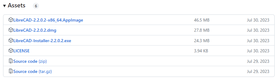 아래쪽에 Assets에서 LibreCAD-Installer-2.2.02.exe를 클릭하여 다운 받습니다.