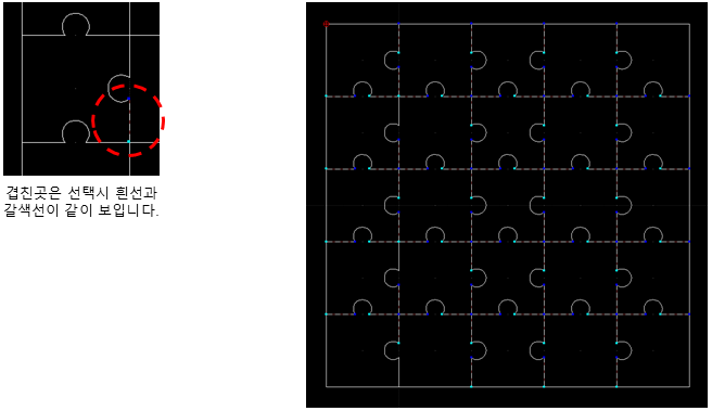 퍼즐 간에 겹친 선을 지워줍니다. 선택 후 delete 키를 누릅니다.