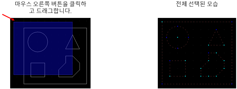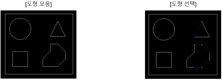 큰 사각형을 그리고 그 안에 작은 도형을 그립니다.