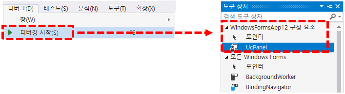 다시 도구상자를 보면 [프로젝트명] 구성 요서 > UcPanel이 보입니다.