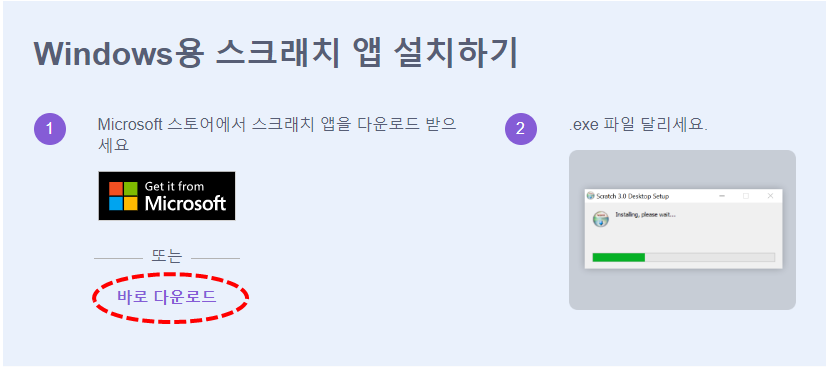 다음은 스크래치를 PC에 설치하는 방법입니다.