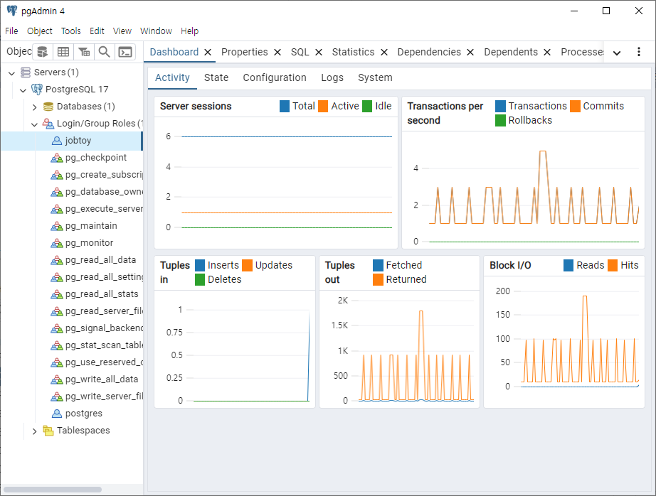 pgAdmin4의 기본 기능으로 쿼리를 진행합니다.