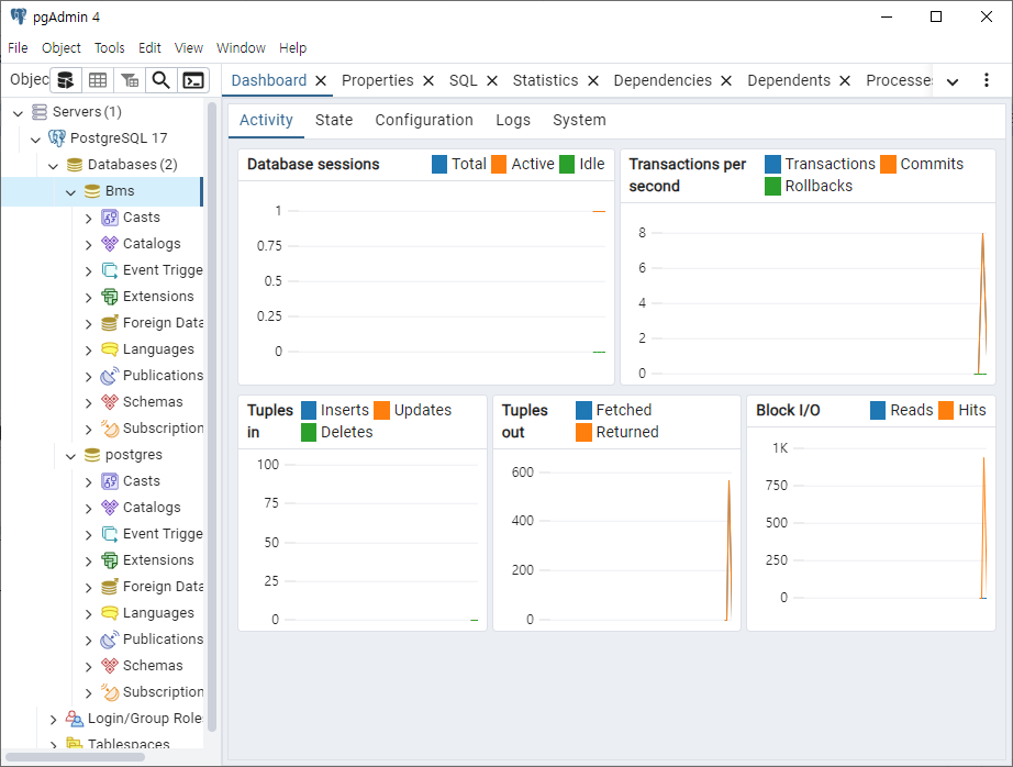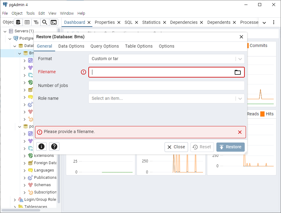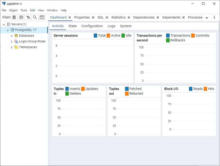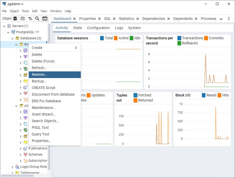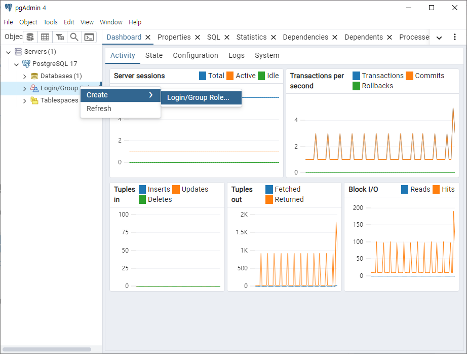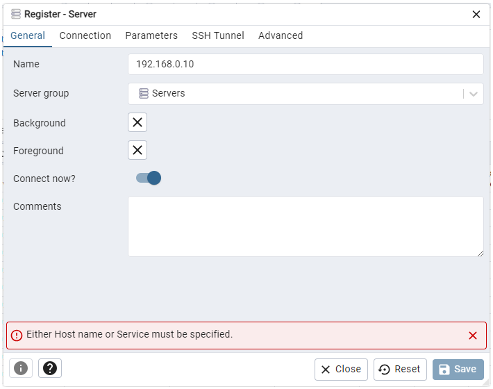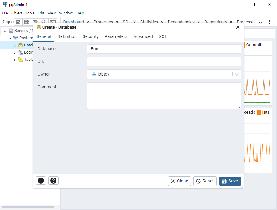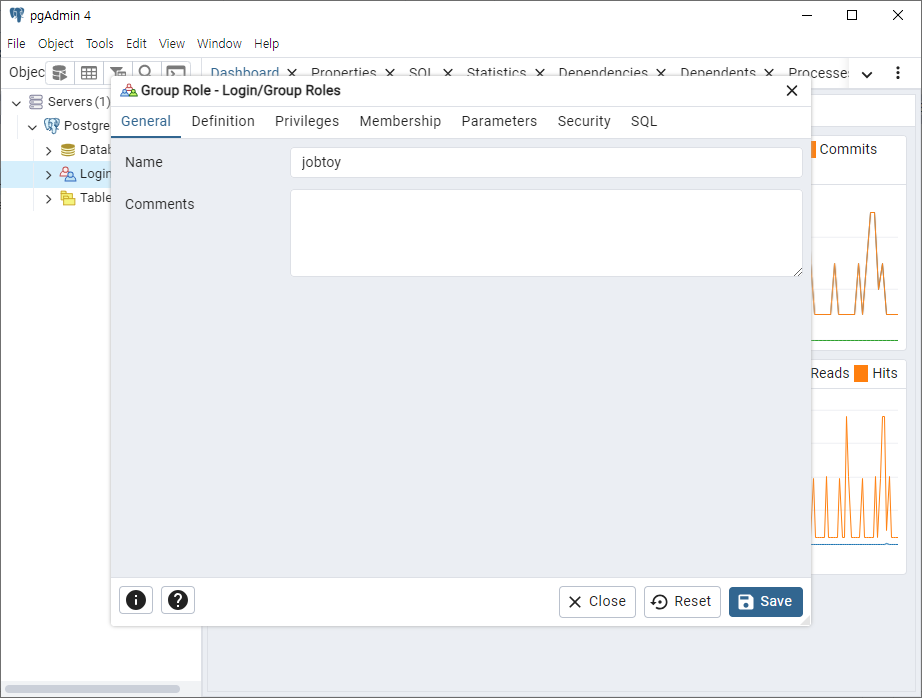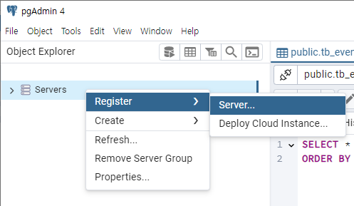 다른 PC에 설치되어 있는 PostgreSQL에서 Server를 새로 등록합니다.