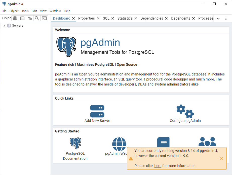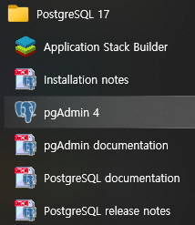 설치가 완료 되었습니다. pgAdmin4를 실행해 봅니다.