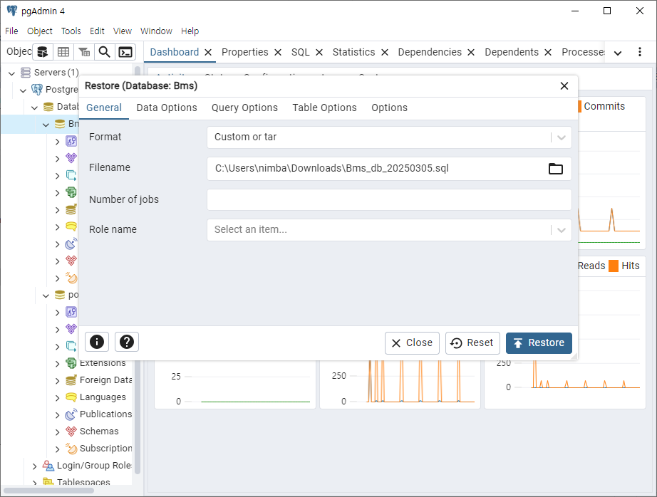 postgresql 설치 및 백업, 복구 본문