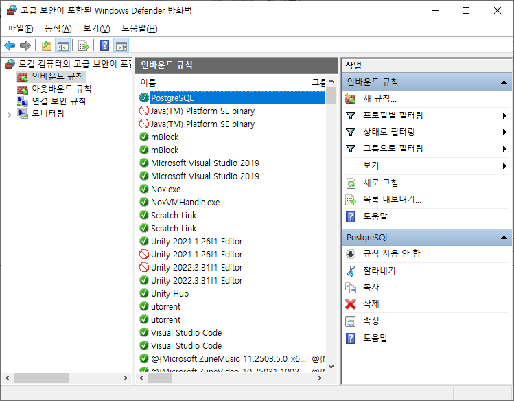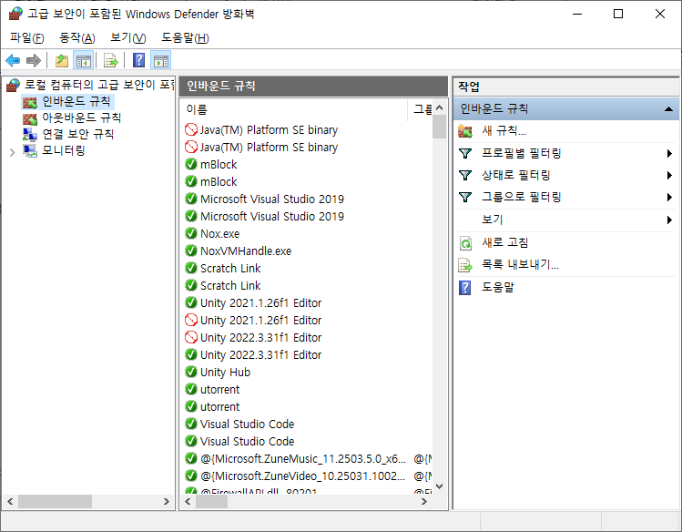 인바운드 규칙의 새규칙을 선택 합니다.