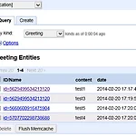 [gae] Datastore 에 데이터 집어넣기 jar는 이전 글에 올려 두었다. https://developers.google.com/appengine/docs/java/gettingstarted/usingdatastore google app engine에 데이타를 집어 넣으려고 전에 예제를 돌려 보았었다. 언제가 성공을 했었는데 어~ 또 안 되었다. 이번에는 구글 사이트의 예제를 이어서 돌려 보았다. 음... 로컬에서는 잘 되었다. 사이트에 배포해서 돌렸는데 어라~ 안되네 먼저 데이터를 저장 될 수 있도록 조금 수정해서 해 보았다. 잘 되었다. ^^ 다음은 등록된 데이타이다. 쉽게 데이터가 google app engine의 datastore에 저장되었다. jsp 사용예제는 guestbook.jsp이고..