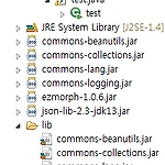 [jsp] json-lib 를 이용한 list -> json 으로 뽑기 jdk14 [샘플] [애플리케이션 파일 구조] [소스] package sample; import java.util.HashMap; import java.util.List; import java.util.Map; import net.sf.json.JSONArray; import net.sf.json.JSONObject; import net.sf.json.xml.XMLSerializer; public class test { /** * @param args * http://sheplim.tistory.com/74 */ public static void main(String[] args) { // TODO Auto-generated meth..
