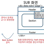 [mobile web] 모바일웹에서 화면전환 방법 main화면에서는 2depth 메뉴아이콘을 클릭하면 등록된 url로 sub화면으로 이동시킵니다. sub화면에서는 서비스내에서 hash change를 이용하여 화면을 갱신시켜 줍니다. 상단 우측에 메뉴 슬라이드를 클릭하면 동일 depth의 메뉴가 나오고 메뉴 클릭시 메인처럼 등록된 url로 화면 전환합니다. hash change는 jquery mobile의 기능을 이용합니다. [mobile web] 모바일웹에서 화면전환 방법